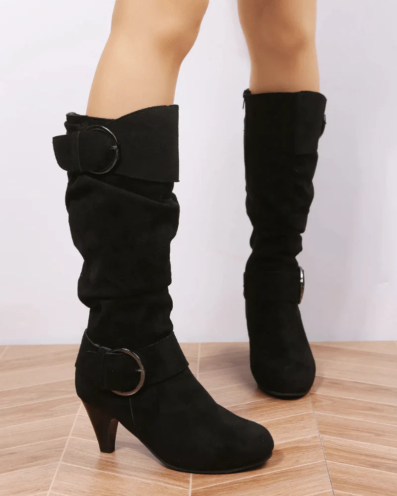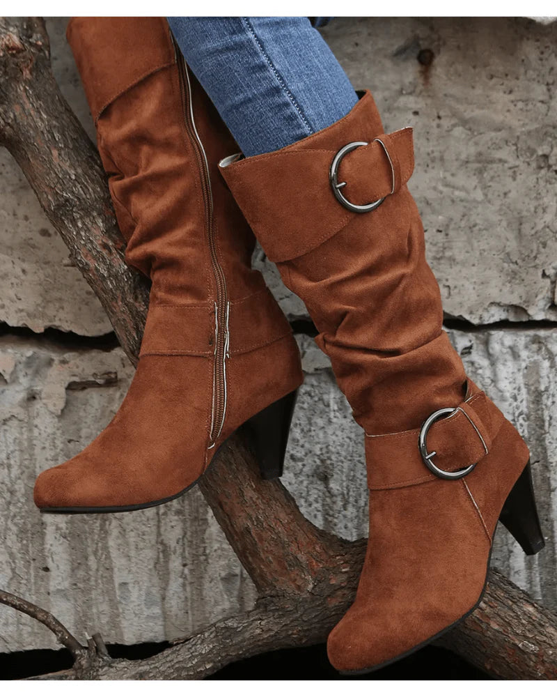 Zachte hoge laarzen voor dames. De comfortabele jas biedt een luxe pasvorm en het huis is warm, ideaal voor een elegante en praktische winterlook.